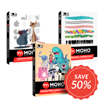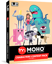 Moho内でプロフェッショナルにデザインされたキャラクターコンテンツパックは、ベクター描画でボーンがフルリギングされており、スマートボーンをはじめとするMoho独自のアニメーション機能を最大限に活用できます。これらのキャラクターは、極めて精緻な動きも表現でき、真にプロフェッショナルなアニメーションを実現します。