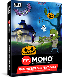 Moho内でプロフェッショナルにデザインされたハロウィーンコンテンツパックには、リグ付きキャラクター、背景、すべてのリソースを使用したサンプルシーン、そしてフルレンダリングされたアニメーションビデオが満載です。このコンテンツパックでは、Moho独自のリギングおよびアニメーション機能、スマートボーン、ダイナミクス、マスキング、3D空間、フレームバイフレームアニメーションなど、Mohoの多くのユニークな機能をご覧いただけます。