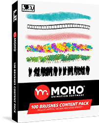 Moho Brushesコンテンツパックは、Moho ProとMoho Debut向けにプロフェッショナルにデザインされています。このブラシパックは、あらゆるユーザーに最適な様々なブラシが収録された素晴らしいパックです。ブラシパックには100種類のブラシが含まれています。