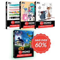Professionally designed within Moho, the Halloween Content Pack is full of rigged characters, backgrounds, an example scene using all of the resources and a fully rendered animated video. The content pack demonstrates many of Moho's unique features including Moho's unique rigging and animation capabilities, Smart Bones, Dynamics, Masking, 3d space and Frame-by-Frame animation.